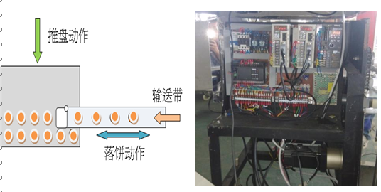 3.落餅循環:整盤落餅完成后,X、Y軸回原點,落盤電機動作,落下新盤,并由Y軸推出,落餅循環。